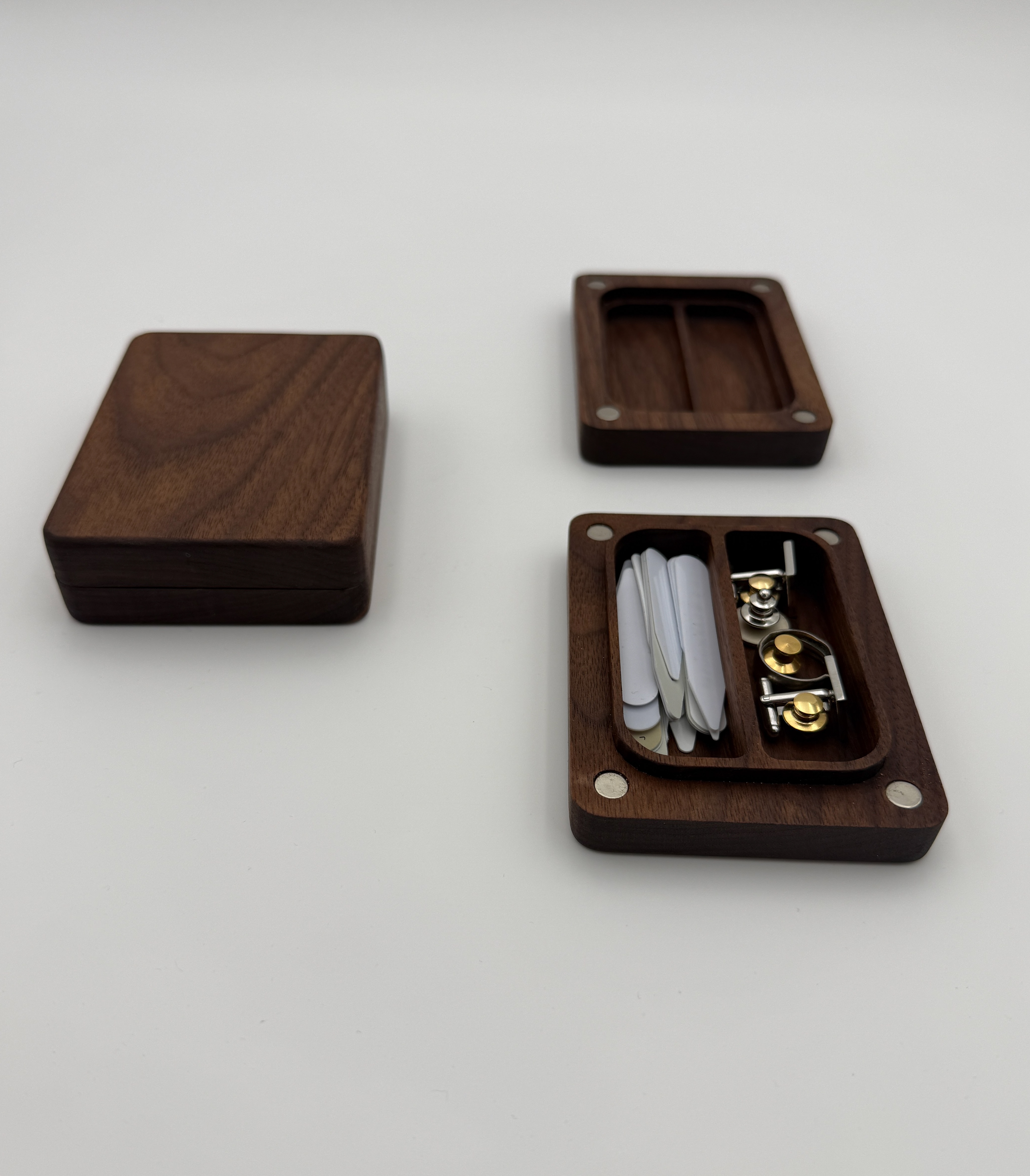A functional piece of craftsmanship, this walnut magnetic box blends utility with elegance—ideal as a personal organizer or a thoughtful handmade gift.