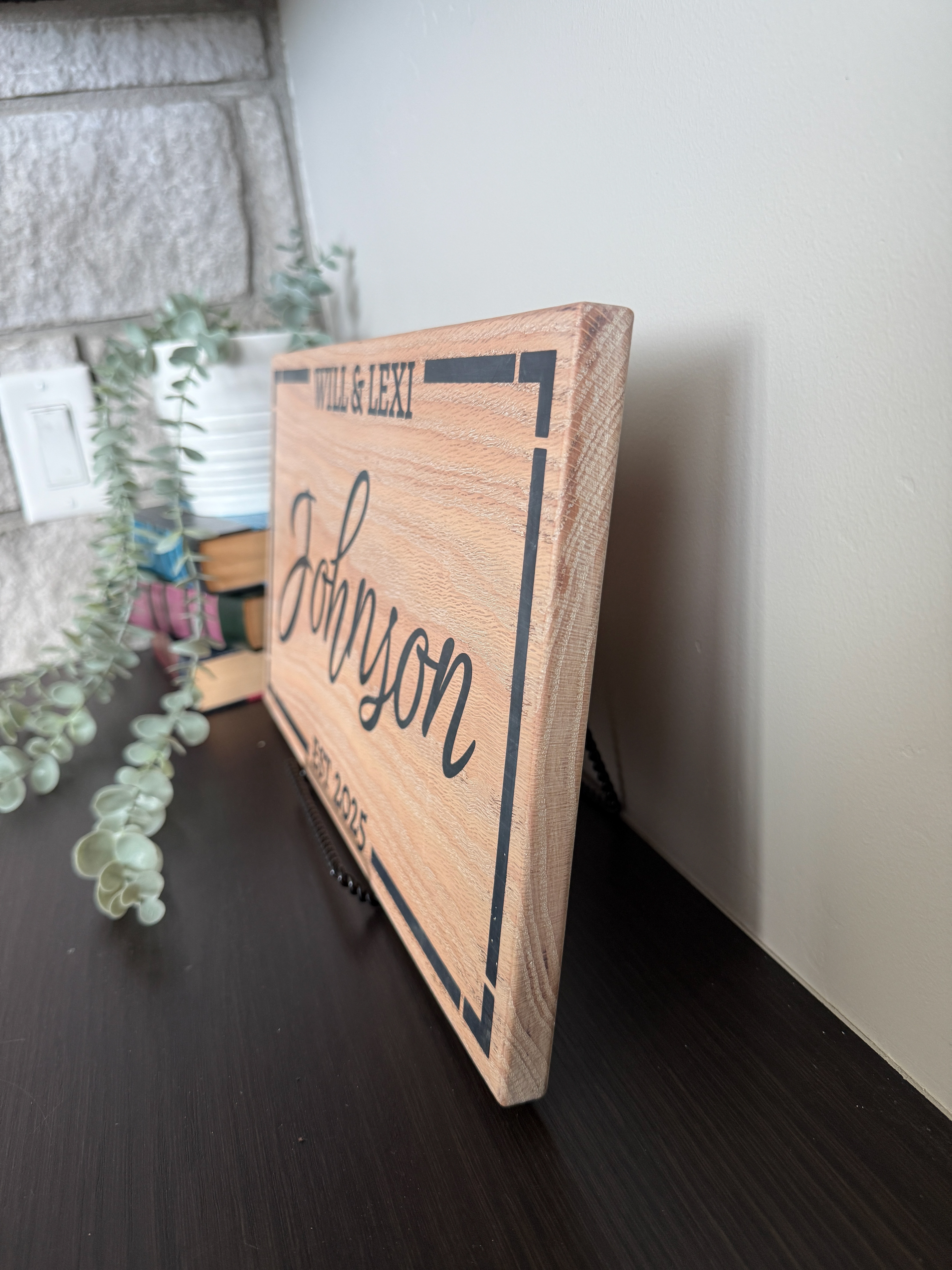 Made from solid oak wood, this sign features a bold monogram with elegant lettering, creating a timeless piece of décor for your home. Perfect as a wedding gift, anniversary present, or housewarming surprise, this keepsake is a lasting reminder of where your story began.